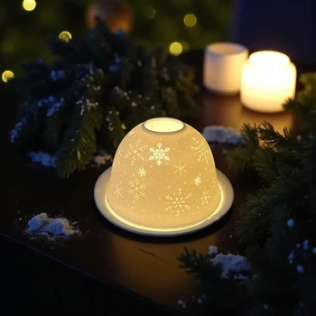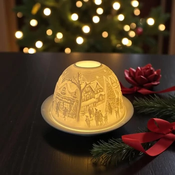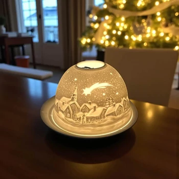 Karácsonyi kerámia mécsestartó - mágikus dóm mécses 17908